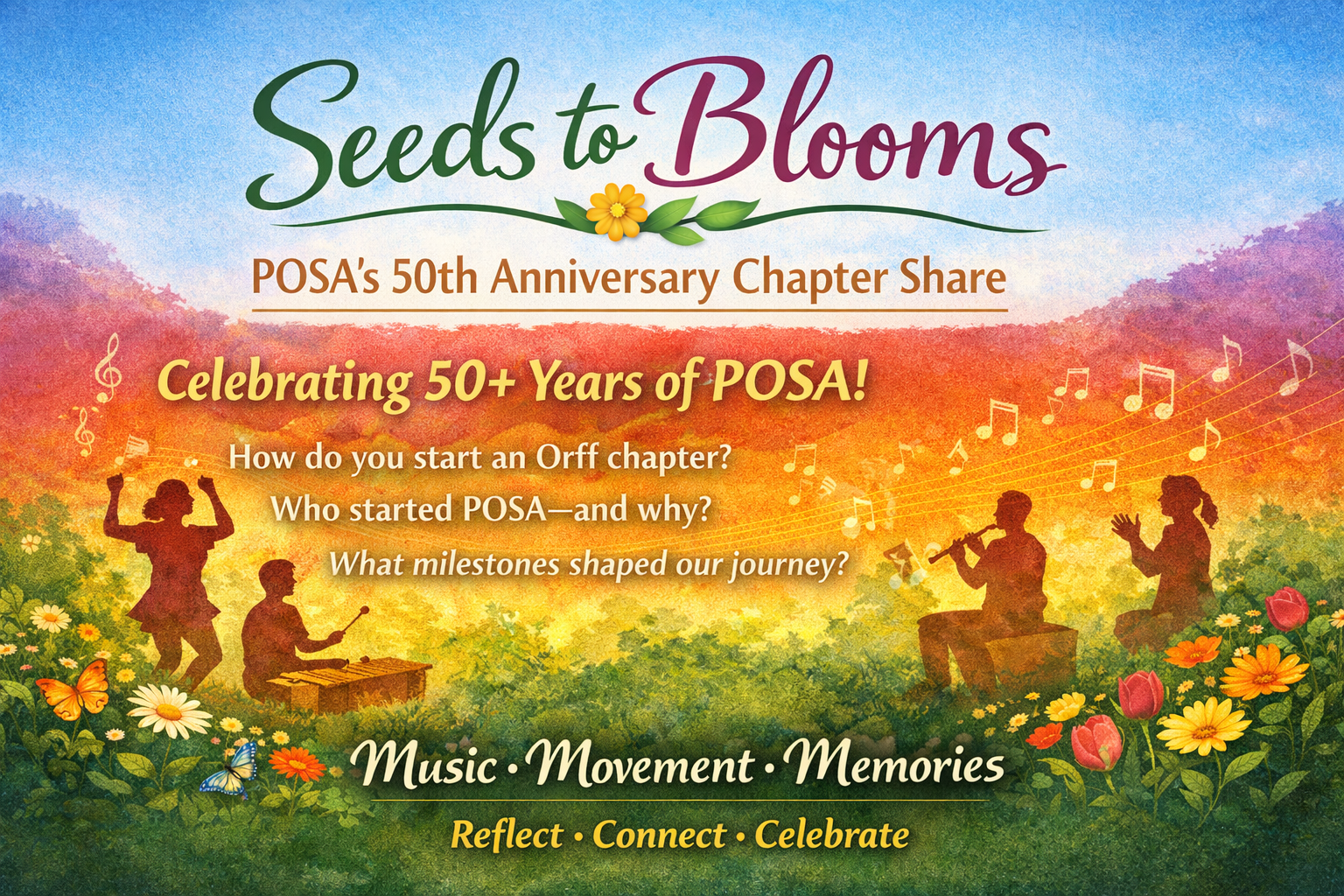 This year’s POSA Chapter Share takes a special turn as we celebrate Seeds to Blooms: POSA’s 50th Anniversary. Long-time and current members come together to share the story of POSA’s fifty-plus years through music, movement, and personal reflections.